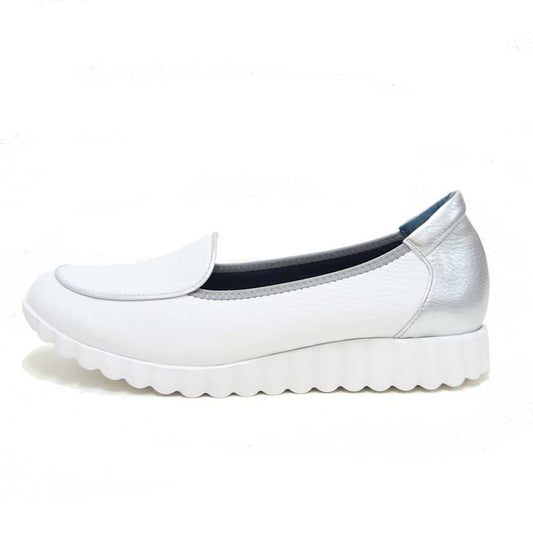 フィズリーン FIZZ REEN 3701 ホワイト(レディース) 快適EEEEのフラットパンプス(日本製) スリッポン 4E レザーシューズ コンフォート ウォーキング タウン カジュアル 「靴」