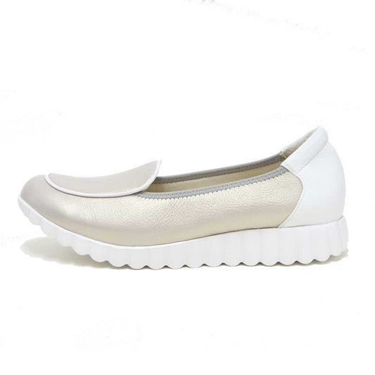 フィズリーン FIZZ REEN 3701 プラチナ(レディース) 快適EEEEのフラットパンプス(日本製) スリッポン 4E レザーシューズ コンフォート ウォーキング タウン カジュアル 「靴」