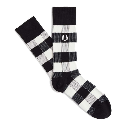 FRED PERRY フレッドペリー Chequerboard Socks C4137 230 BLACK / ECRU チャッカーボード ソックス(ポルトガル製)