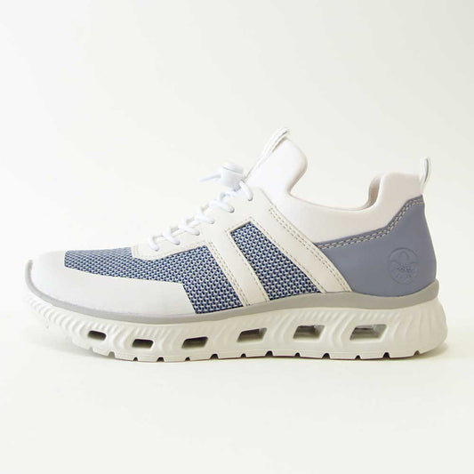 rieker リーカー M6061 90 ホワイト/コンビ (レディース)人工皮革 ストレッチ クッション性の良いお洒落スリッポン フラット スニーカー 「靴」