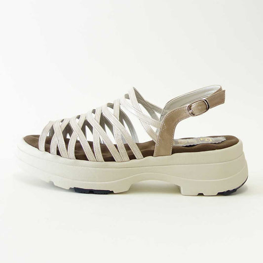 フィズリーン FIZZ REEN 21-6588 プラチナ(レディースサンダル) バックストラップ EEEE 厚底オープントゥサンダル(日本製) コンフォート カジュアル 4E 5cmヒール「靴」