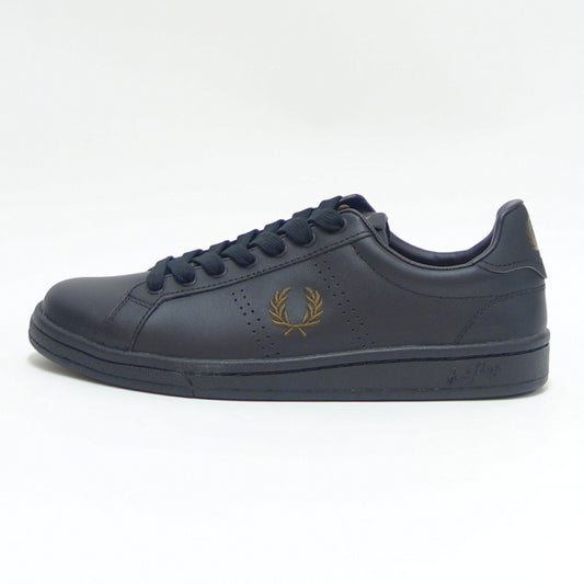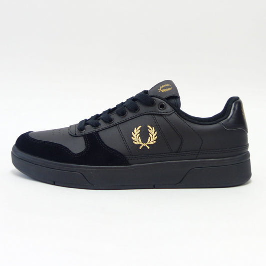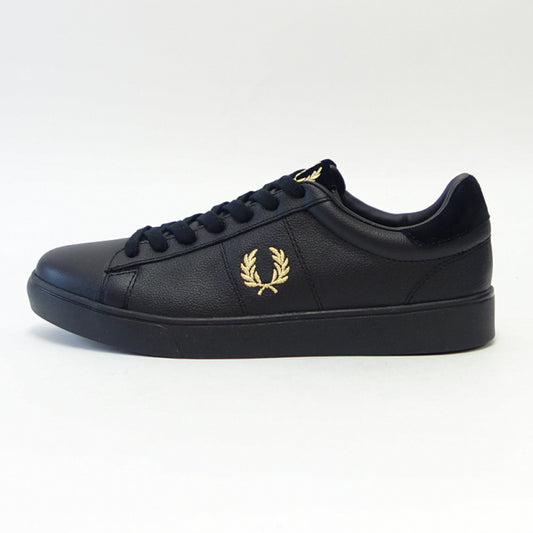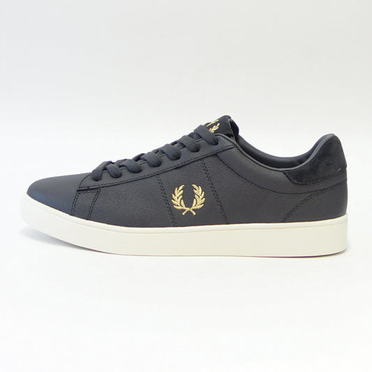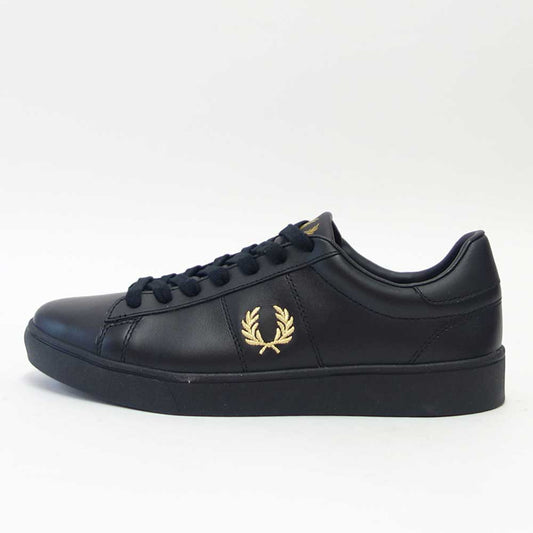 【SALE 30%OFF】 FRED PERRY フレッドペリー B 2333 102(ユニセックス)SPENCER LEATHER (スペンサー レザー) カラー:Black / Metallic Gold 天然皮革のローカットスニーカー 「靴」