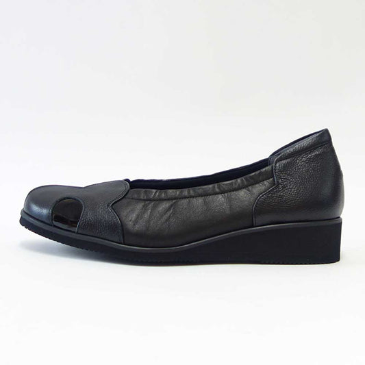 フィズリーン FIZZ REEN 3020 ブラック(レディース) 快適EEEEのウェッジパンプス(日本製) スリッポン ウェッジシューズ 4E レザーシューズ コンフォート ウォーキング タウン カジュアル