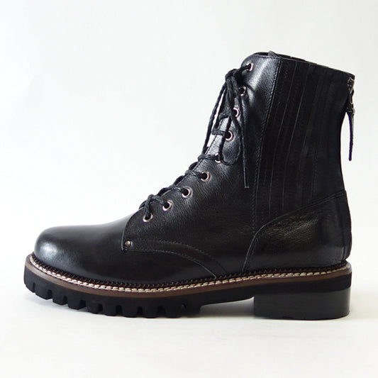 yuko imanishi + ユーコ イマニシ+ 717027 ブラック レースアップブーツ バックジップ サイドゴア ショートブーツ 展開サイズ 23.5cm 24cm 24.5cm「靴」