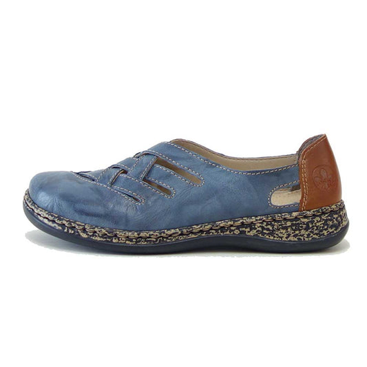 rieker リーカー 46369-12 ブルー (レディース)天然皮革 スリッポン フラット 丸トゥ ゆったりフィット 「靴」