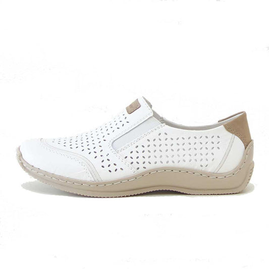 rieker リーカー L1792-80 ホワイト (レディース)天然皮革 スリッポン フラット 軽量 ドライビングシューズ 「靴」