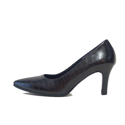 FIZZ REEN フィズリーン 8520 ブラック 型押し(レディース) スタイリッシュ 快適パンプス 7cmヒール ポインテッドトゥ 日本製 「靴」