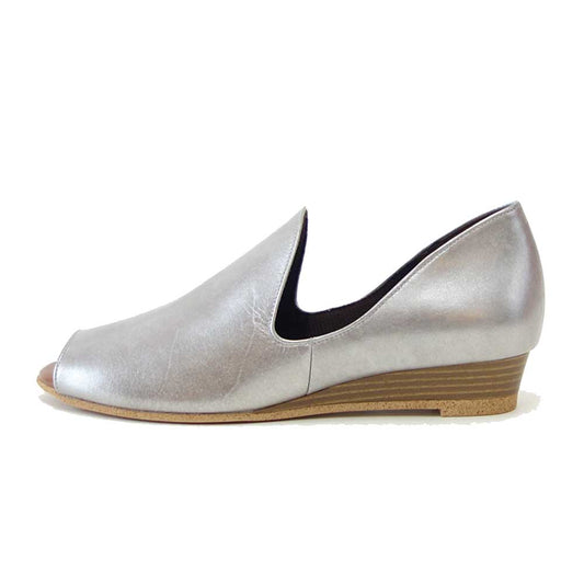 フィズリーン FIZZ REEN 24-2731 シルバー(レディース) 快適 EEE オープントゥ スリッポン ウェッジ シューズ パンプス(日本製) 母の日 おすすめ ギフト「靴」
