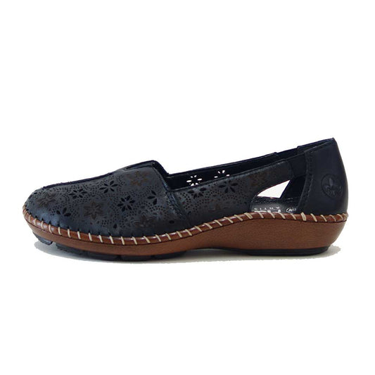 rieker リーカー 44870-00 ブラック (レディース)天然皮革 スリッポン フラット 丸トゥ ゆったりフィット 「靴」
