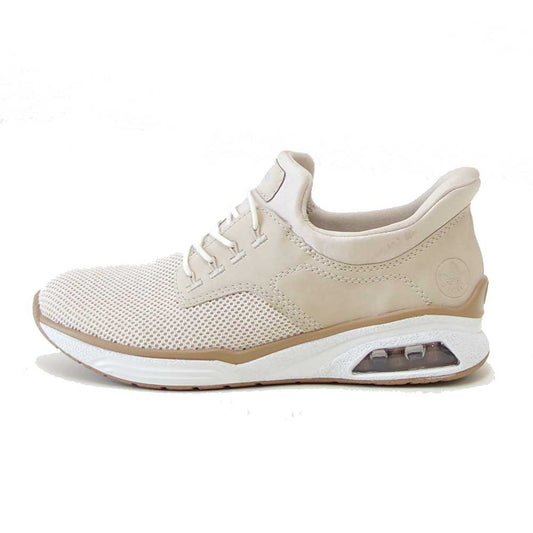 rieker リーカー M5665-60 ベージュ (レディース)メッシュ 人工皮革 ストレッチ スッとイン スリッポン スニーカー レディース ハンズフリー 「靴」