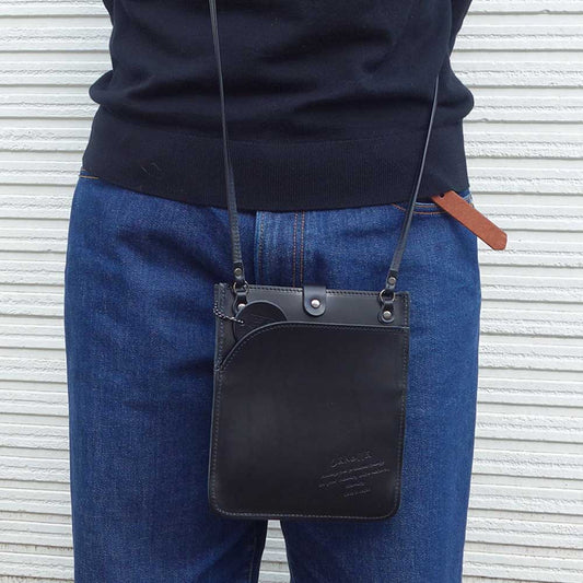 風合いの良いナチュラルレザーのショルダーバッグ Lahellaラヘラ Musta petite shoulder bag L-259 ブラック(日本製) ポーチ イタリアンレザー 栃木レザー