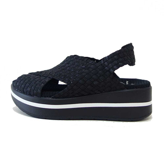 Gomu56 ゴムゴム 5024 ブラック (レディース) ゴムメッシュ クロスストラップサンダル 厚底シューズ 外反母趾 水洗いOK「靴」