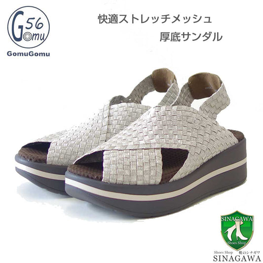 Gomu56 ゴムゴム 5024 シャンパン (レディース) ゴムメッシュ クロスストラップサンダル 厚底シューズ 外反母趾 水洗いOK「靴」