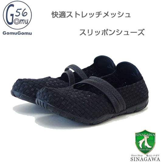 Gomu56 ゴムゴム 5301 ブラック (レディース) ゴムメッシュ スリッポン フラットシューズ オフィス履き 外反母趾 水洗いOK「靴」