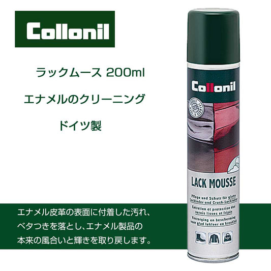エナメル用クリーニングムース コロニル Collonil ラックムース(ドイツ製) 200ml パテントレザー 汚れ落とし クリア ベタつき除去 靴 バッグ 小物
