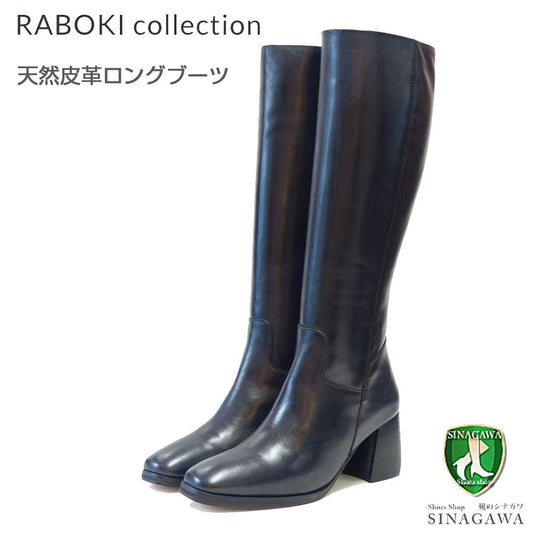 ラボキ コレクション RABOKI collection 86009 ブラック 本革 ロングブーツ サイドジップ 7cmヒール「靴」