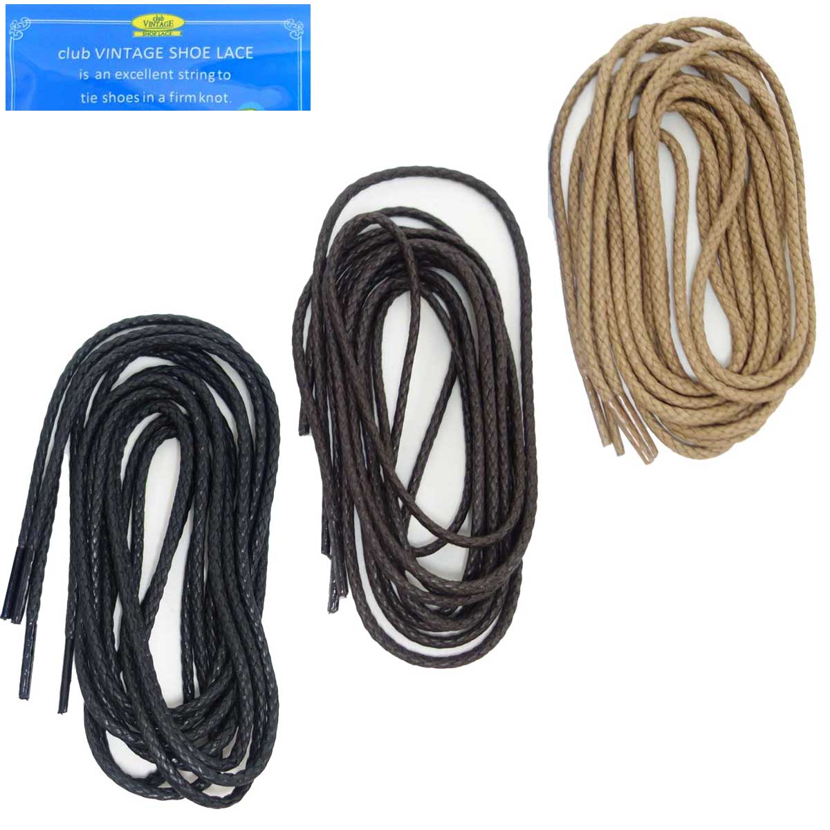 | club VINTAGE COMFORT(クラブ・ヴィンテージ・コンフォート) カントリーシューレース (約4mm) 石目丸 ブラック・ダークブラウン・ダークベージュ 70cm 90cm 120cm 140cm |