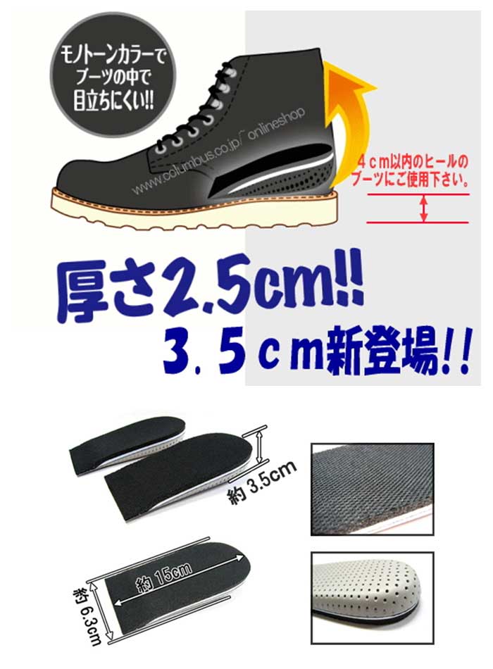 COLUMBUS コロンブス Heel fit & up(3.5cm) カカトフィット&アップメンズ(男性用) ブーツスタイルを3.5cmアップ