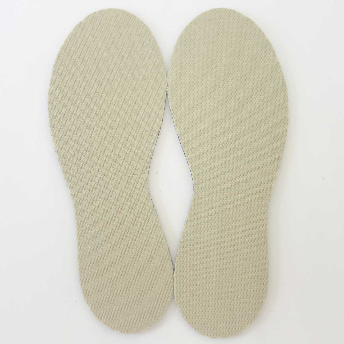 素材: 第1層(ポリエステルカノコ): 耐久性に優れ、サラリとした感触を保つ抗菌・防臭加工の ポリエステルカノコを使用しました。菌の繁殖を抑制し、 気になるニオイを抑えます。 第2層(EVAクッション): 弾力性、耐久性に優れたEVAクッションを使用しました。 クッション性を損なわず、通気性を高めるスクエアパンチ ング加工で長時間歩いていてもさわやかな履き心地をキー プします。 サイズ:フリーサイズ(16~24cm対応) インソール厚さ:約4mm ※体重のかかっていない状態での数値です。 生産国:日本 【使用方法】 ・フリーサイズですので、ご希望のサイズにカットして ご使用ください。 ※必要なサイズのチャートは台紙に印刷されています。 ・サイズチャートは標準的なサイズ・カタチになっています。 靴によってサイズ・カタチが異なりますので、以下のカット 方法をおすすめします。始めは長さ、横幅ともに(使用する靴 のサイズより)大きめにカットしてください。サイズ・カタチ を確認しながら少しづつカットして調整してください。 ・布地面を表(上)にして、靴の中に入れてください。 ・2足を交互にご使用頂くと、効果がより持続します。 ・手洗いによる洗濯が可能です。 【ご注意】 ・大きさに少しゆとりのある靴にご使用ください。 ・インソールは標準的な形に作られていますが、靴によっては 横幅が合わない場合があります。 ・小石や砂が靴の中には入りますと、インソールを痛める原因 となります。 ・インソールは折り曲げないでください。 ・足に痛みを感じたら、直ぐに使用を中止してください。 |