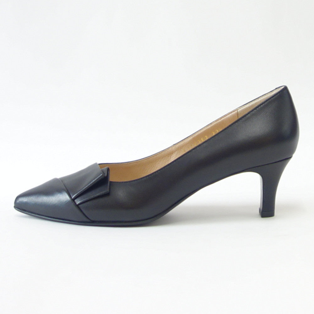 EIZO エイゾー 15362 ブラック 上質レザー プリーツモチーフポインテッドパンプス(5.5cmヒール) |