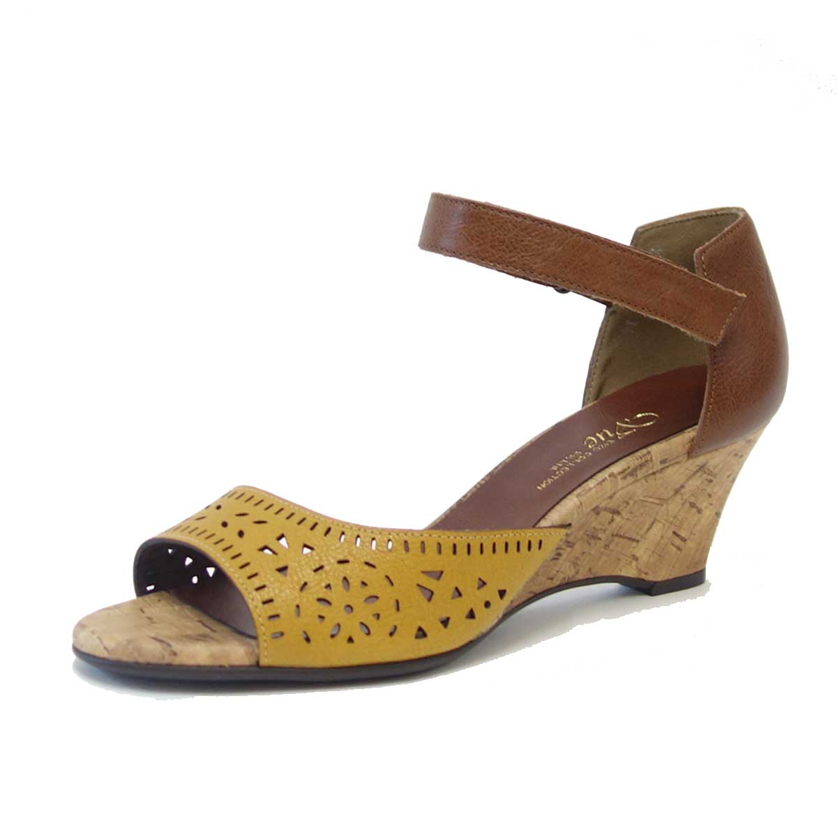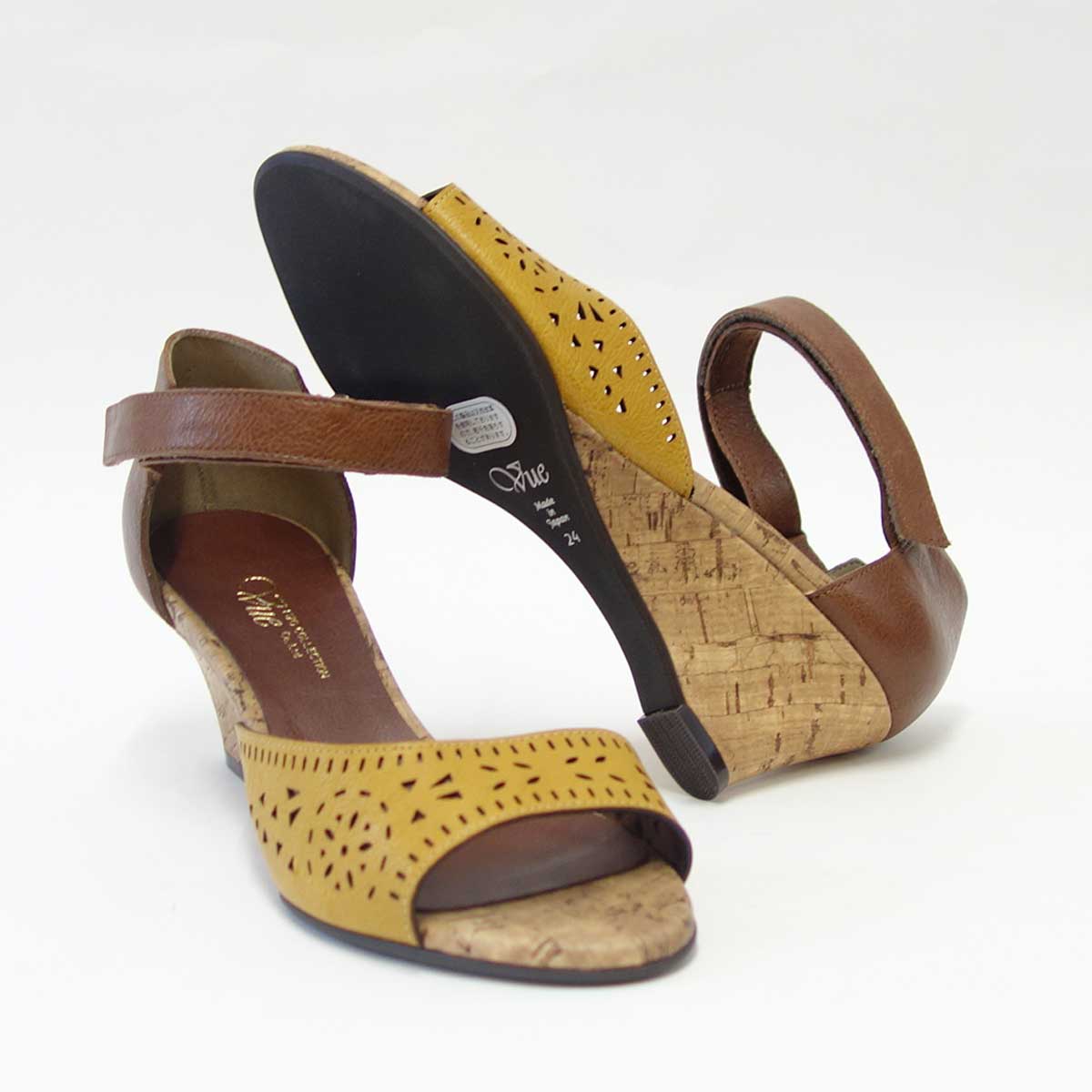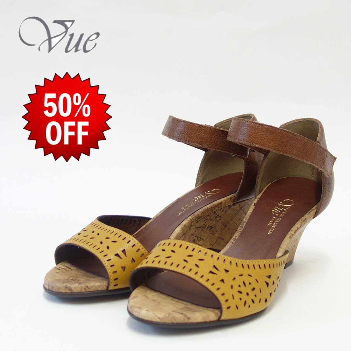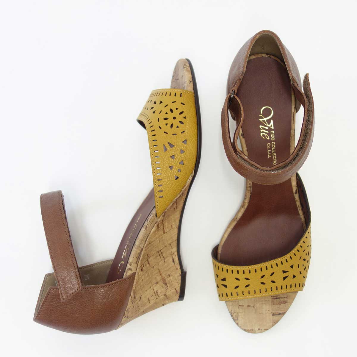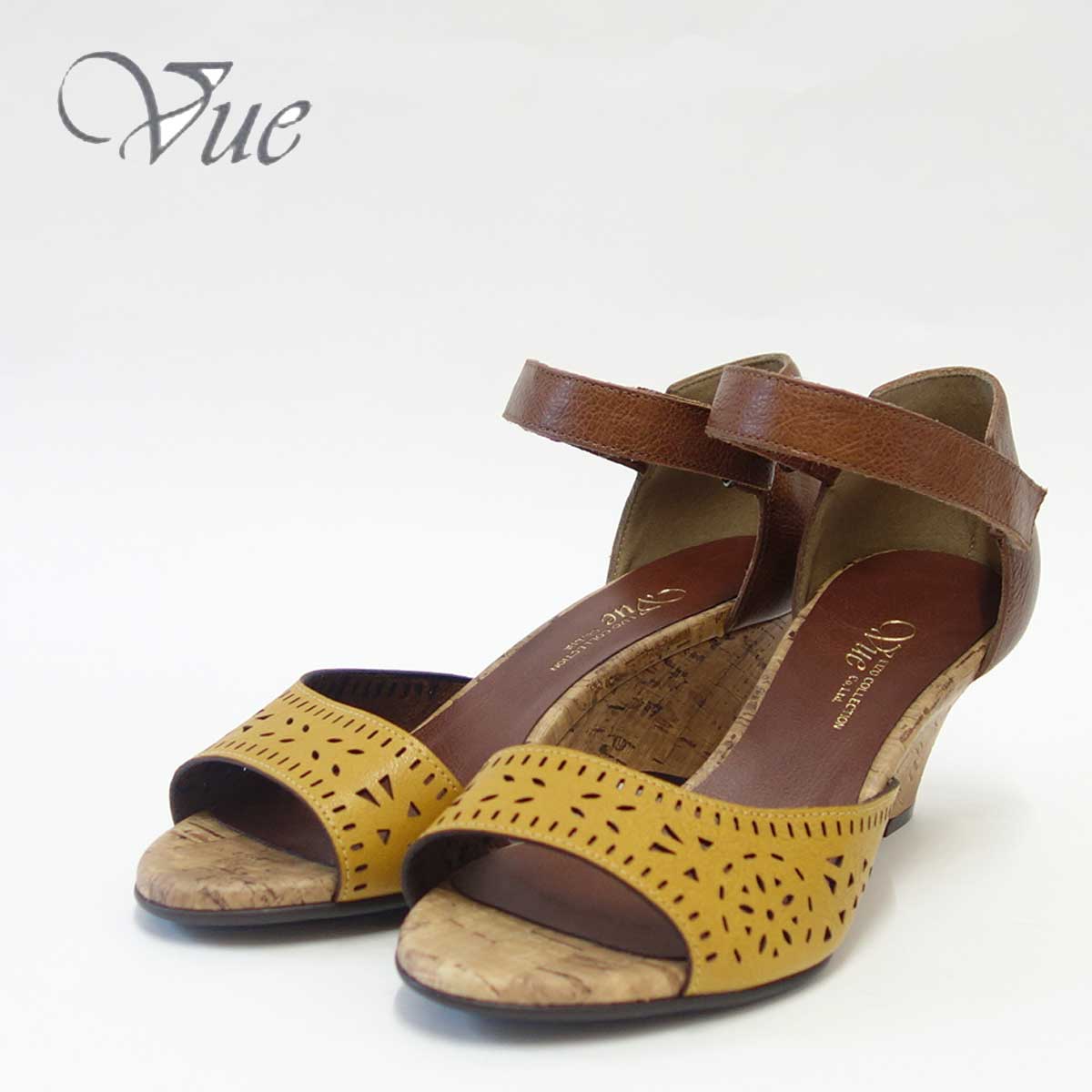 【SALE 50%OFF】 Vue ビュー EIZO Collection 55571 イエロー/ブラウン オープントゥ ウェッジシューズ 「靴」