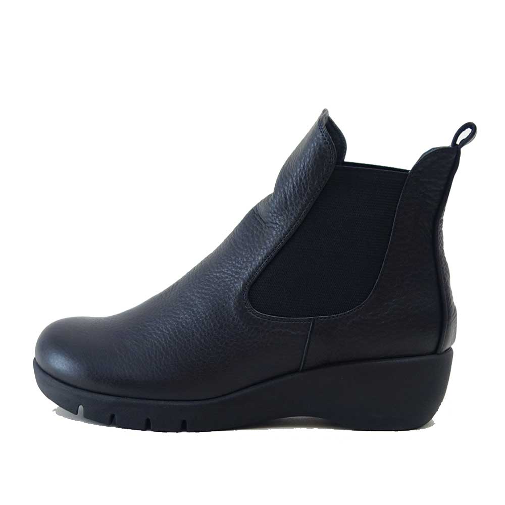 | ソフトなシボ感のあるスムースレザーのコンフォートブーティ、高級感ある素材としっかりとした作り(日本製)。サイドゴアタイプのお洒落で履きやすいアンクルブーツ。ソフトレザーのEEEEコンフォートシューズ。軽量ウェッジヒール。快適クッションインソール内蔵。 |