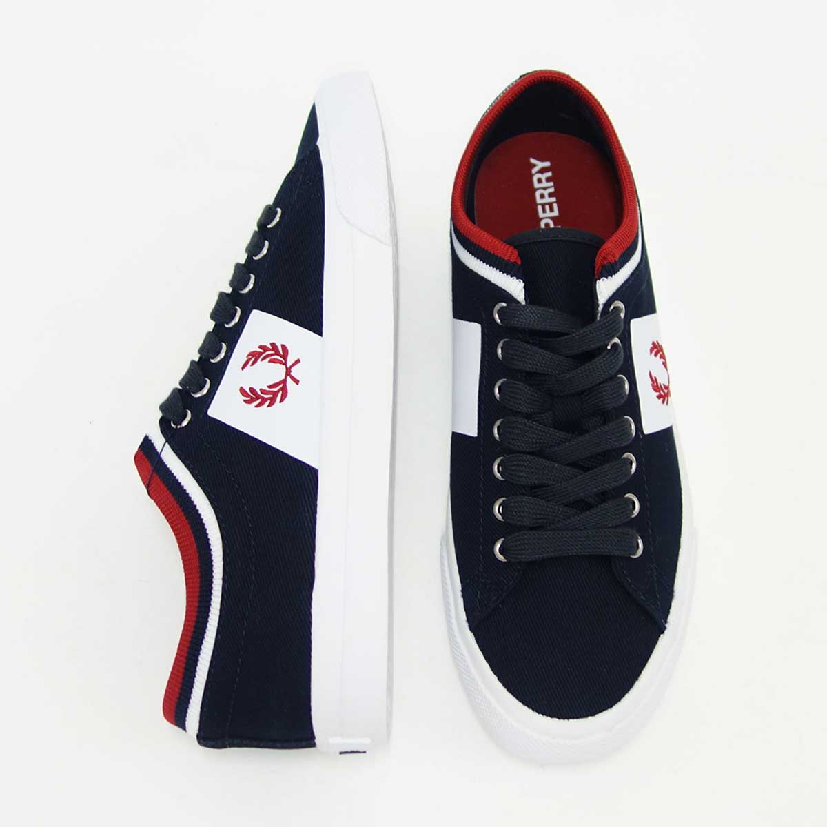 FRED PERRY フレッドペリー B7106(ユニセックス)Underspin Tipped Cuff Twill カラー:ネイビー/ホワイト(608A) 「靴」