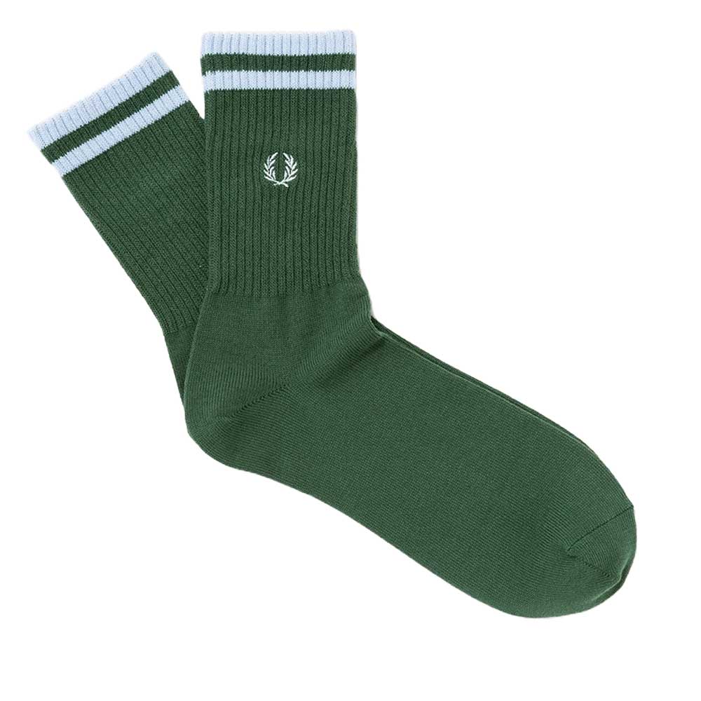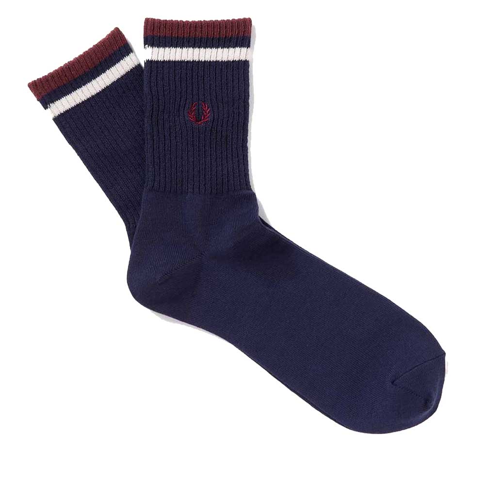 ティップライン入りリブ編みのショートソックス。 FRED PERRYのシグニチャーであるティップイランが特徴です。配色はフレッドペリーシャツのカラーと合わせています。 糸の一部にリサイクル原料を使用しています。 |
