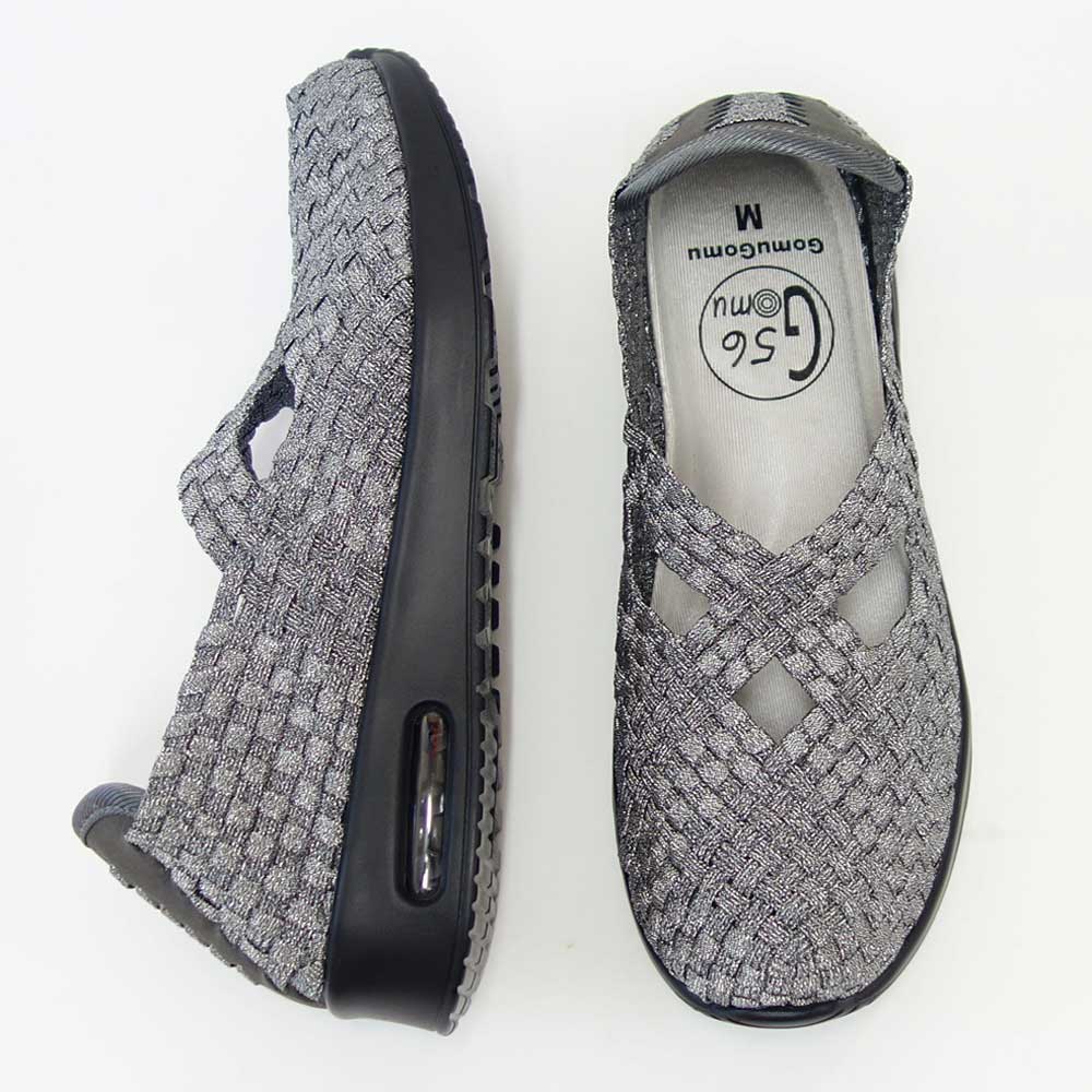 Gomu56 ゴムゴム 5520 ダークシルバー (レディース) ゴムメッシュ スリッポン エアークッション搭載 フラットシューズ オフィス履き 外反母趾 水洗いOK「靴」