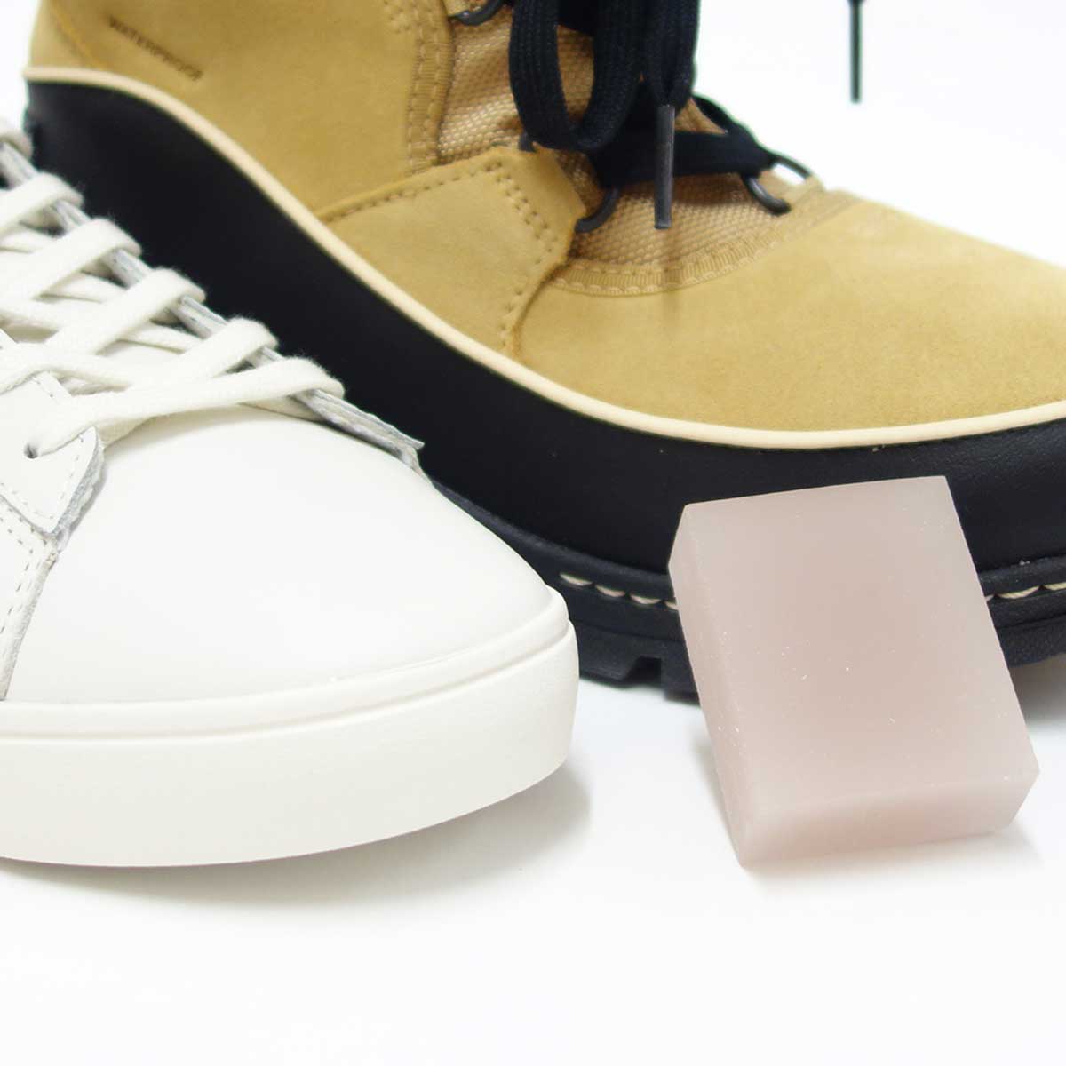スムースレザーやスエード等の革製品はもちろんのこと、スニーカーのラバーソールやワークブーツのホワイトソール等、革以外の素材にも使用可能。見落としがちですが、ソール部分は靴の印象をガラっと変えるポイントです。キレイな白を取り戻しましょう。 |