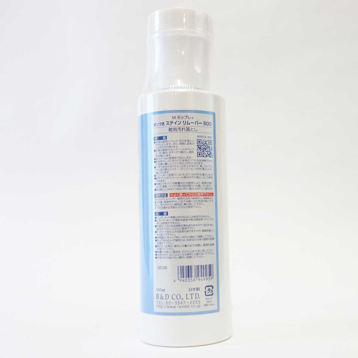 靴クリーナー モゥブレィ ステインリムーバー M.MOWBRAY モウブレイ ポンプ式ステインリムーバー 500ml LLサイズ 大容量 お得(日本製) 靴 シューズ クリーナー 汚れ落とし ワックス除去 ブーツ パンプス くつ お手入れ 革靴 水垢 潮吹きモウブレイ R&D