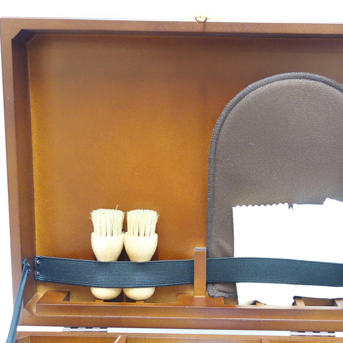 重厚なイメージの本格木箱 思う存分靴磨きができます。
