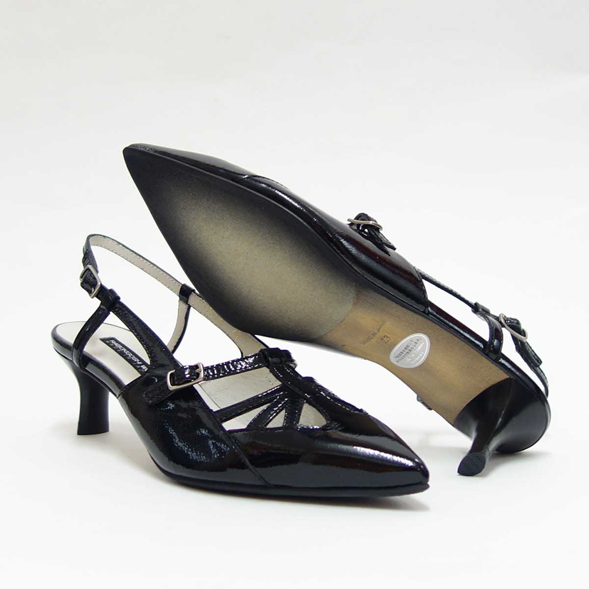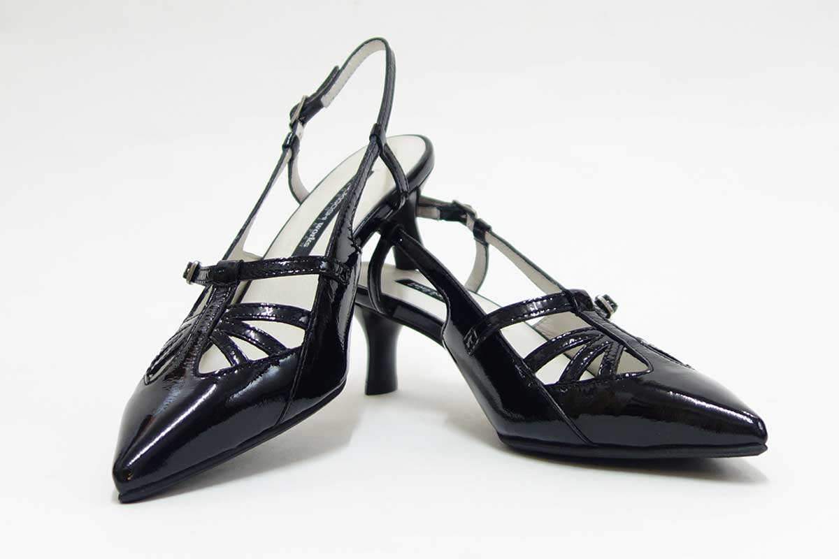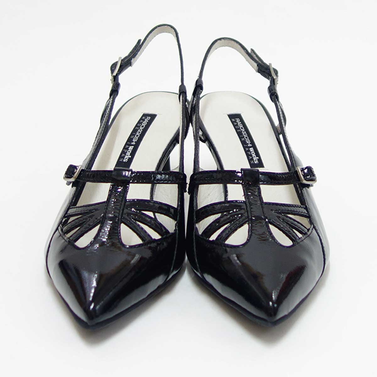 | ワークス(WORKS)バックストラップパンプス。柔らかなゴードエナメル(山羊革)を使用。細くて華奢なストラップとヒールが女性らしさを演出するパンプスです。 |