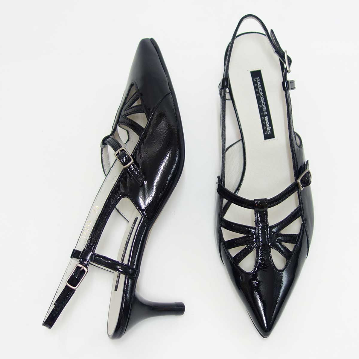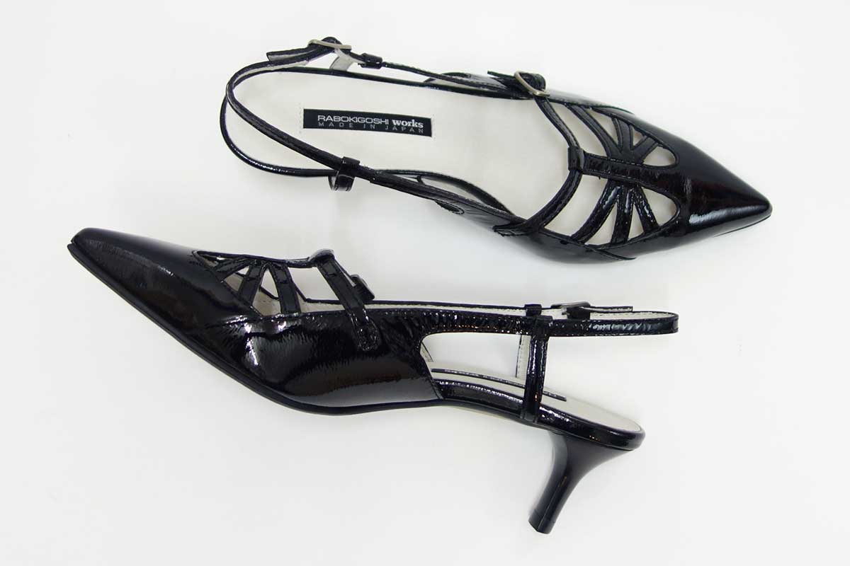 【SALE 40%OFF】 RABOKIGOSHI works(ラボキゴシ ワークス) 12316 ブラック エナメルバックベルトパンプス 「靴」