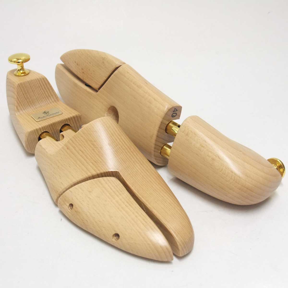 | 幅は標準~やや広め、甲の高さは標準~やや低めです。 材質はブナ、ニス仕上げ、ほのかな天然木の香りがします。 |