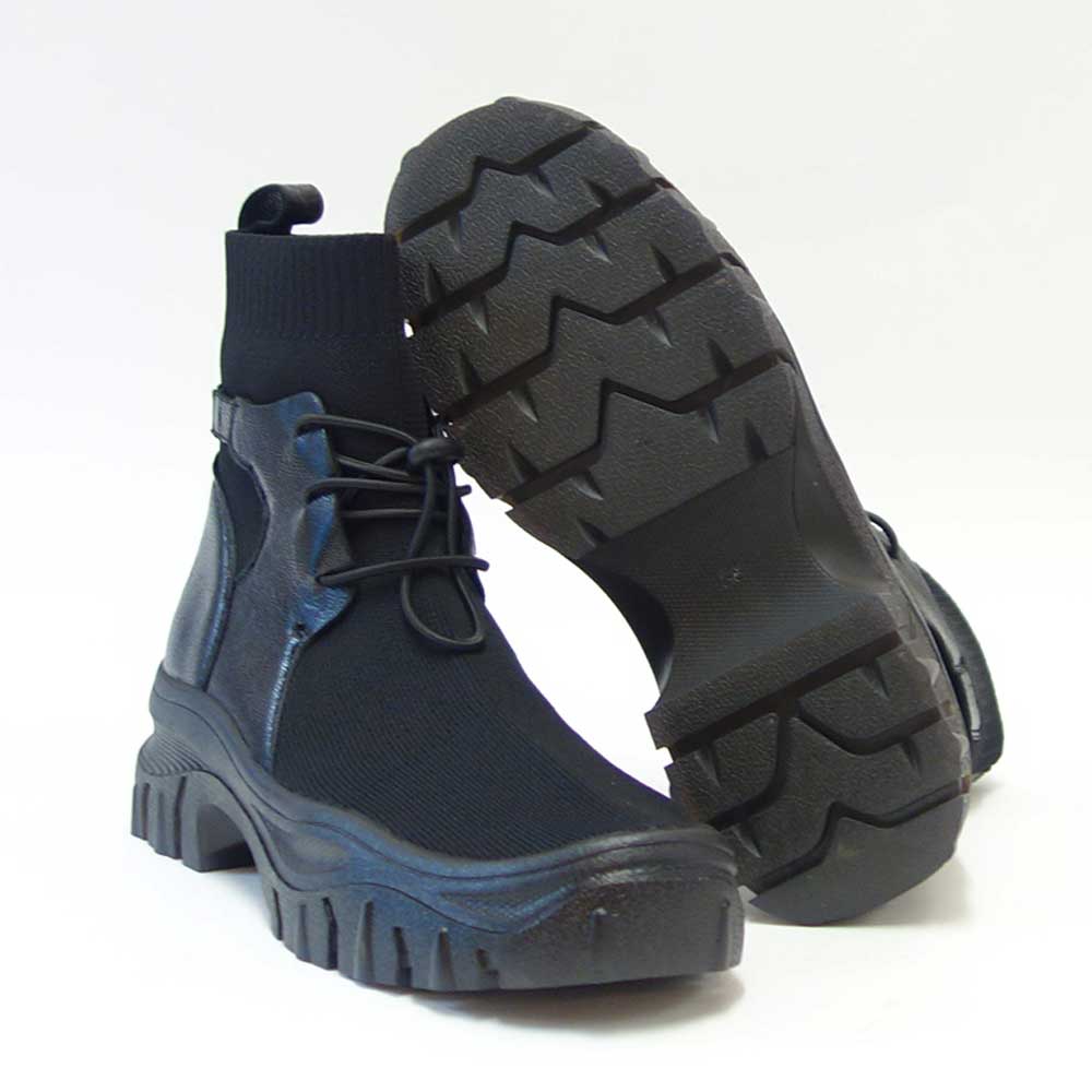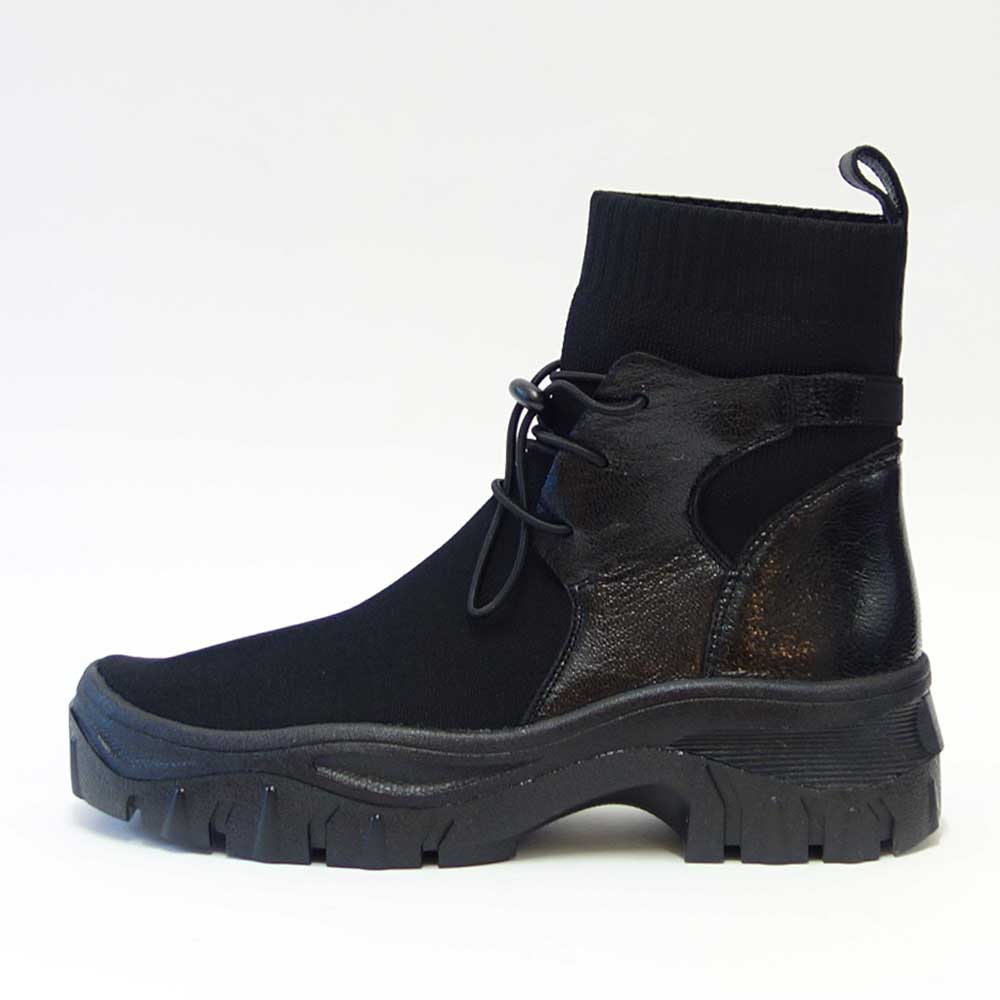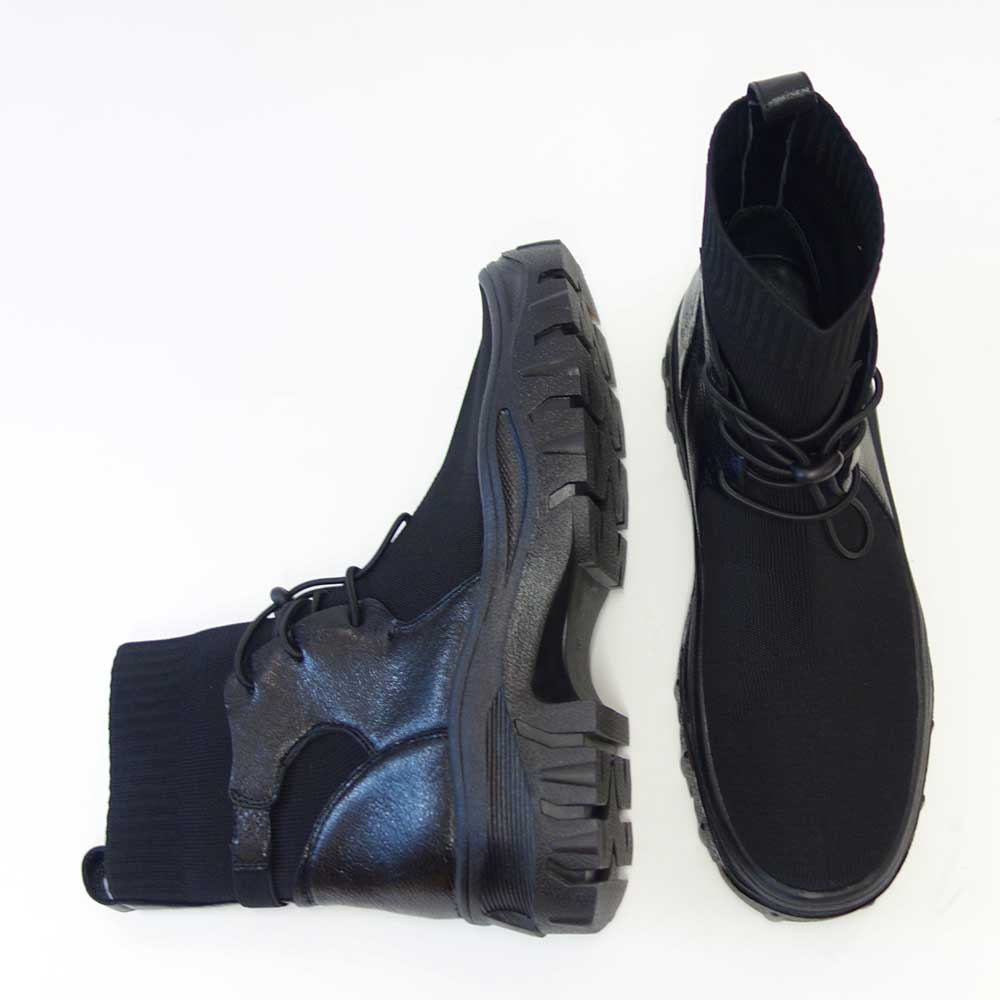 | yuko imanishi + ユーコ イマニシ+ 716039 KIYO ブラック 天然皮革 ゴムレース ストレッチブーツ ショートブーツ |